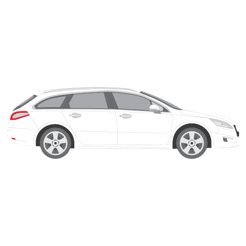 Peugeot 508 farmari millintarkasti muotoonleikatut tummennuskalvot. Säästä aikaa, sekä autoa veitsen naarmuilta hankkimalla valmiiksi muotoon leikatut auringonsuojakalvot.